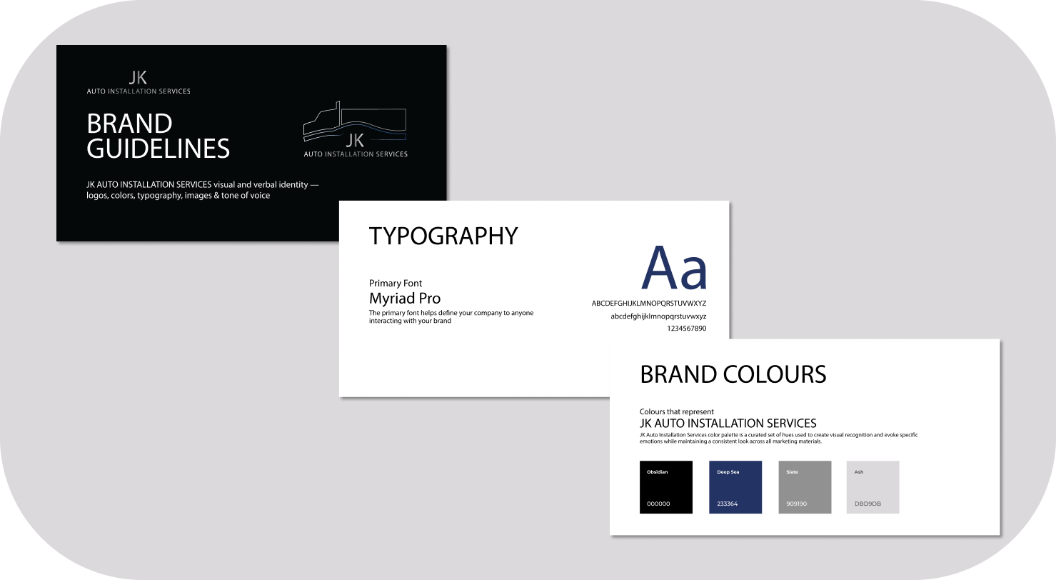 JK Auto Installation Services approached Cosmic Creative looking for their first brand identity. The client wanted a logo design that included both a truck and a car, since they didn’t have any existing branding or logo. We worked closely to create a design that reflected their vision.